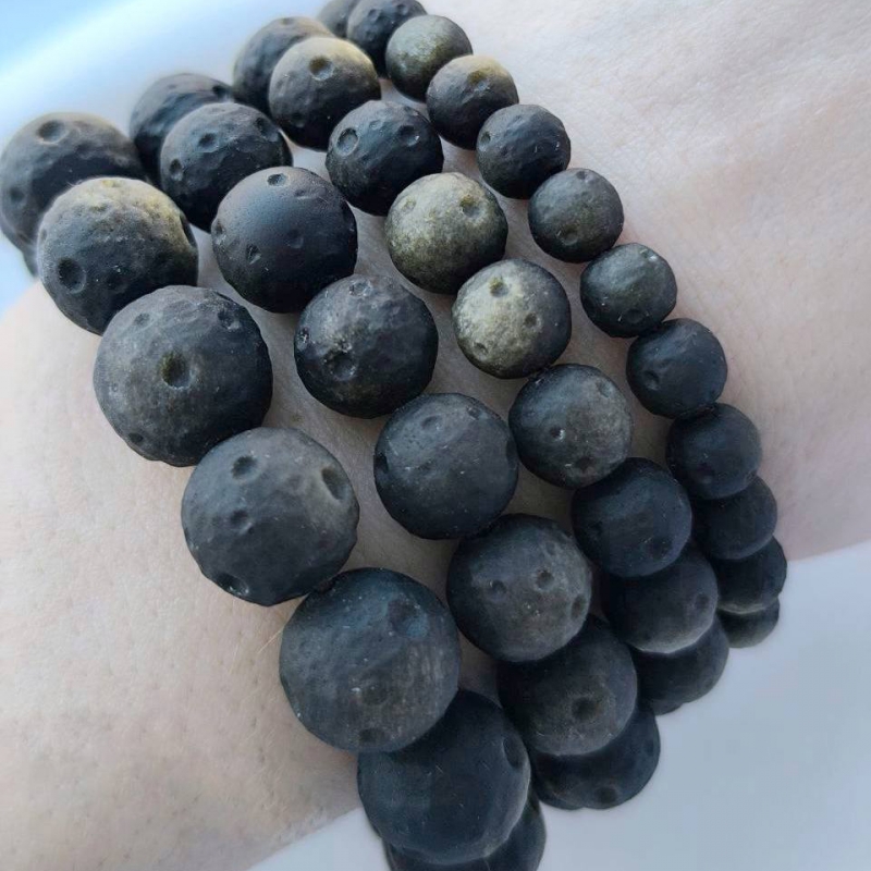 Браслет из Обсидиана диаметр бусин 7мм 8мм 11мм 13мм длина изделия 19см