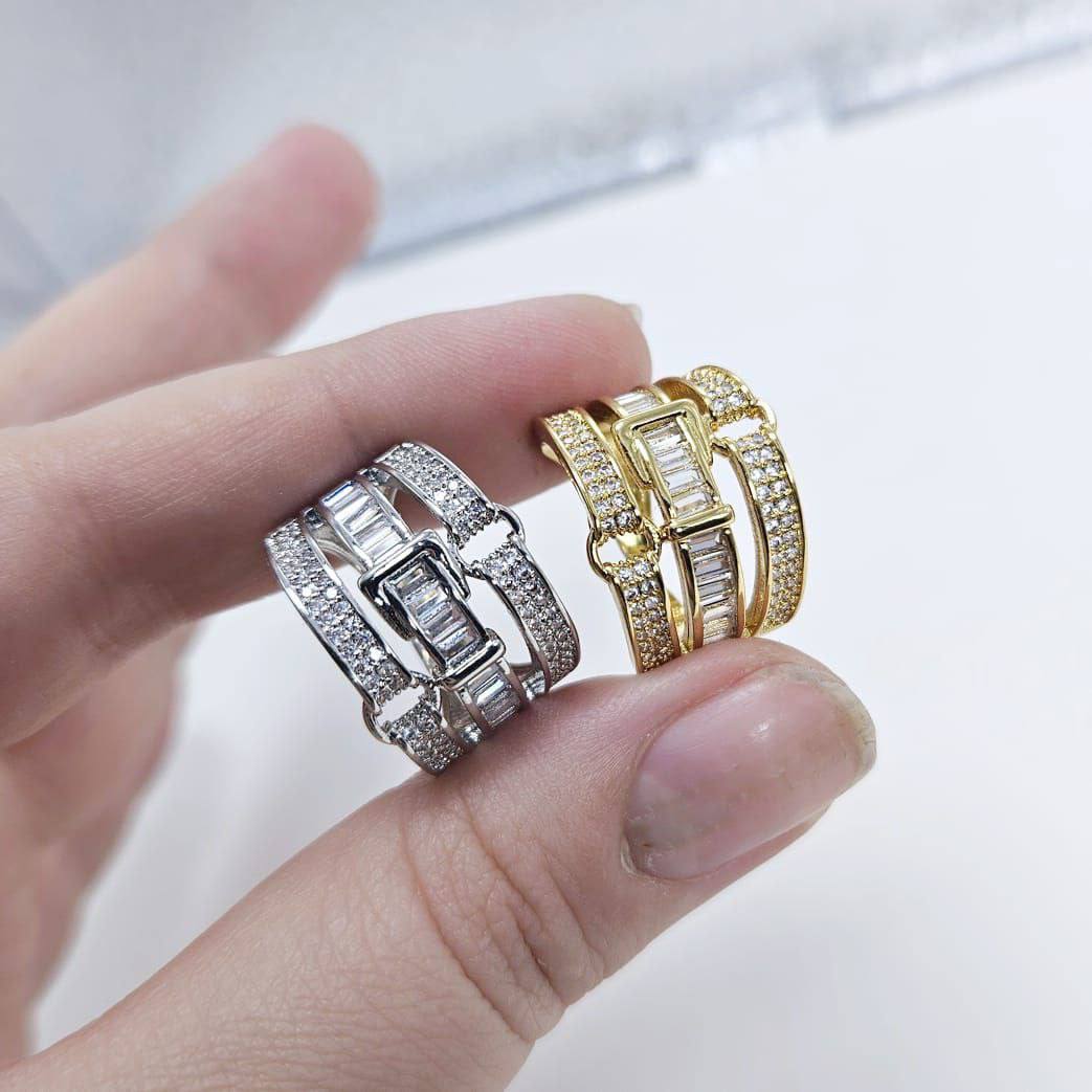 Кольцо безразмерное с фианитами размер 20*15мм цвет золото в Твери