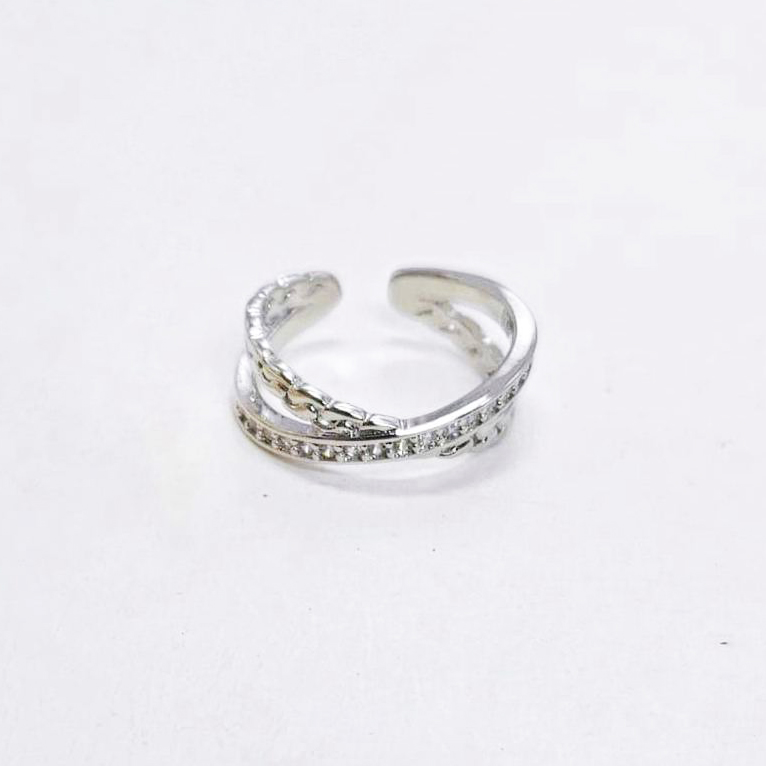 Кольцо безразмерное с фианитами размер 20*7мм цвет серебро в Твери